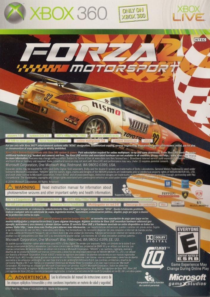 Forza 2 With authentic simulation physics, bone-jarring damage, photo-realistic graphics, and licensed tuning and customization options, the franchise improves on the unprecedented features gamers enjoyed in its debut installment. Loaded with more than 300 of the world's hottest cars for you to collect, personalize and tune, Forza Motorsport 2 gives you a complete racing experience.