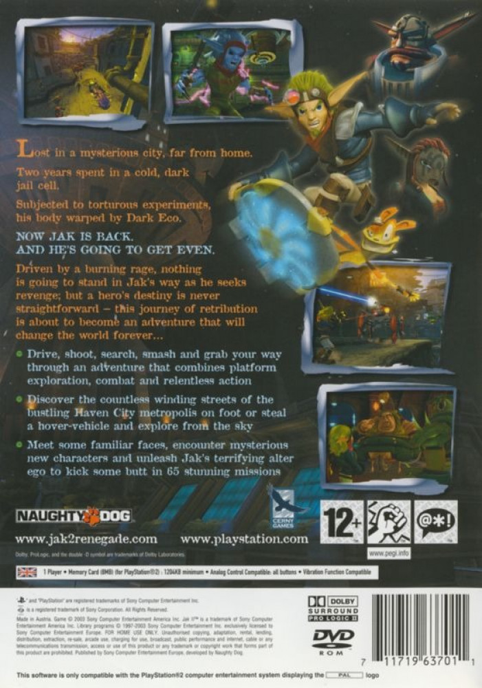A new world of magic, adventure, exploration, and discovery awaits you in Jak & Daxter: The Precursor Legacy. A magical substance called Dark Eco transforms Daxter into a furry Ottsel, so Jak and his rodent friend Daxter go on a journey to look for a cure. You'll solve puzzles, collect power cells, meet exotic characters, and battle sinister enemies in enormous vistas. Discover the story behind the mysterious Eco and unleash the hero within.