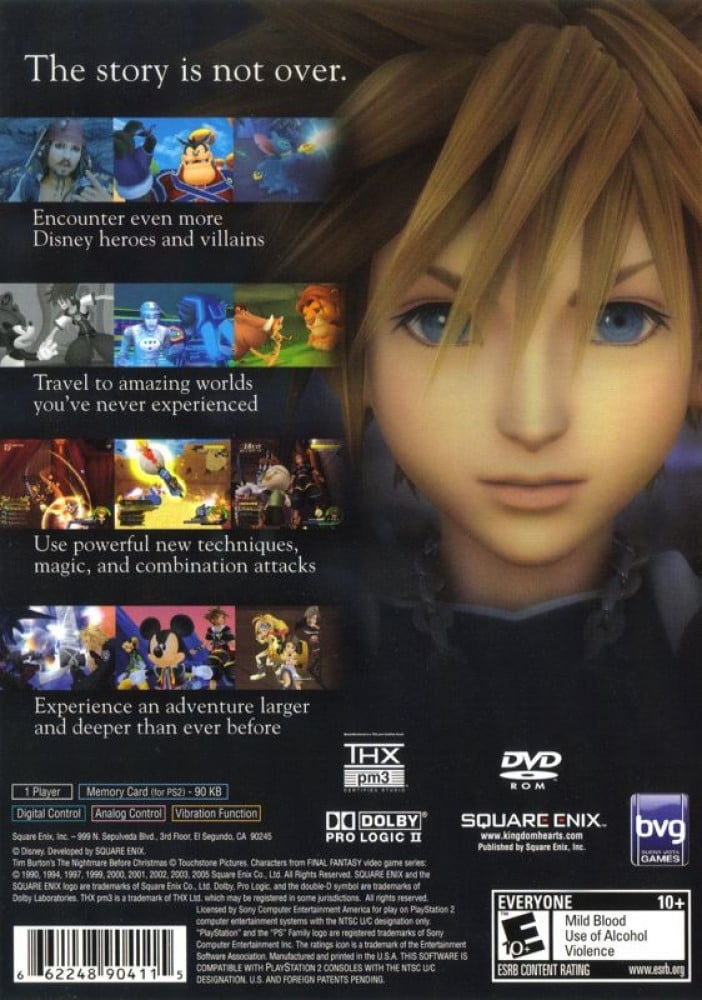 Kingdom Hearts II is the sequel to the action role-playing game featuring a host of familiar characters from movies and video games alike. Disney characters Sora, Donald Duck, and Goofy are searching for their missing king, and it is up to you to help find him. The game also features characters such as Captain Jack Sparrow from Pirates of the Caribbean and characters from the Final Fantasy series of games. Voice actors Haley Joel Osment and James Woods join the cast, and the veteran designers of the original Kingdom Hearts have returned to work on the sequel.