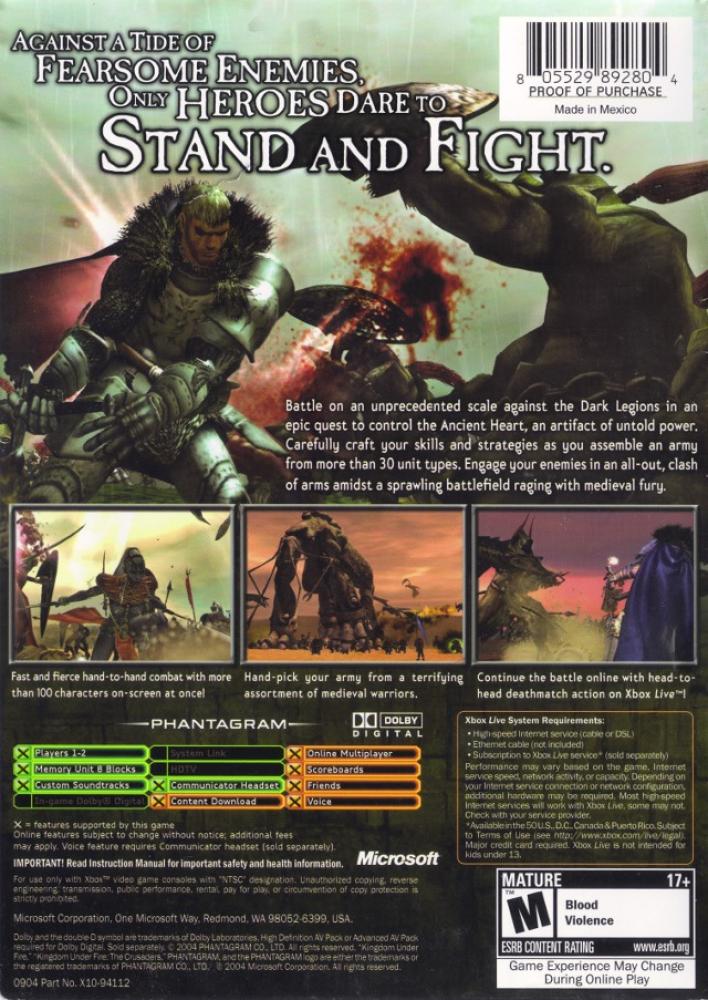 Imagine you're a military hero in the Middle Ages, gallantly striking down the enemy and commanding friendly forces. Set 50 years after the events of Kingdom Under Fire, The Crusaders lets you lead hundreds of troops into war, while managing resources, augmenting your forces, and developing your combat strategies. You can choose to play as one of two races, Humans or Dark Legions, and you can select one of several character types within each race. While moving across the continent, you can stop by castles, gain endorsements from feudal lords, hire mercenaries, replenish or change equipment, and more.