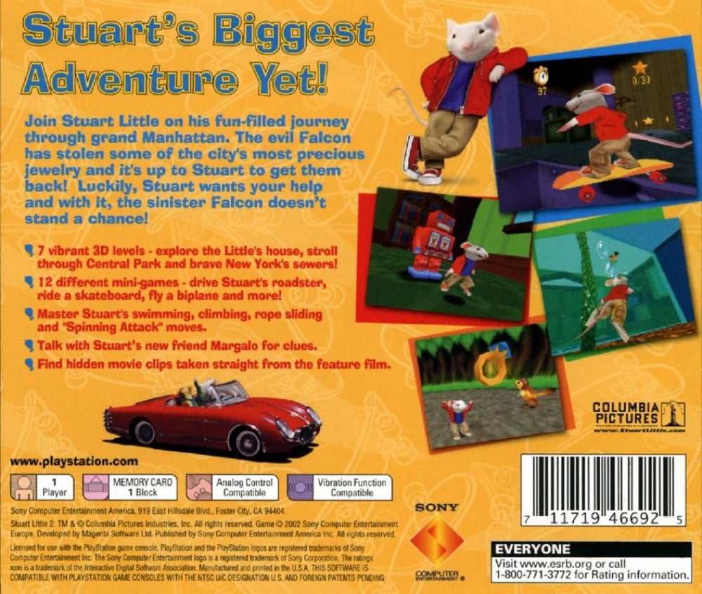 Join Stuart Little on his fun-filled journey through grand Manhattan. The evil Falcon has stolen some of the city's most precious jewelry and it's up to Stuart to get them back! Luckily, Stuart wants your help and with it, the sinister Falcon doesn't stand a chance!