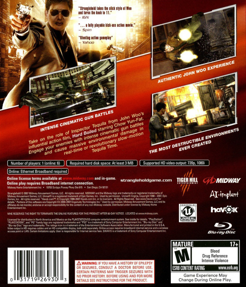 Stranglehold is a third-person action adventure game set in Hong Kong and Chicago. The game is a collaboration between action film director John Woo, and actor Chow Yun-Fat, who stars in the game.
