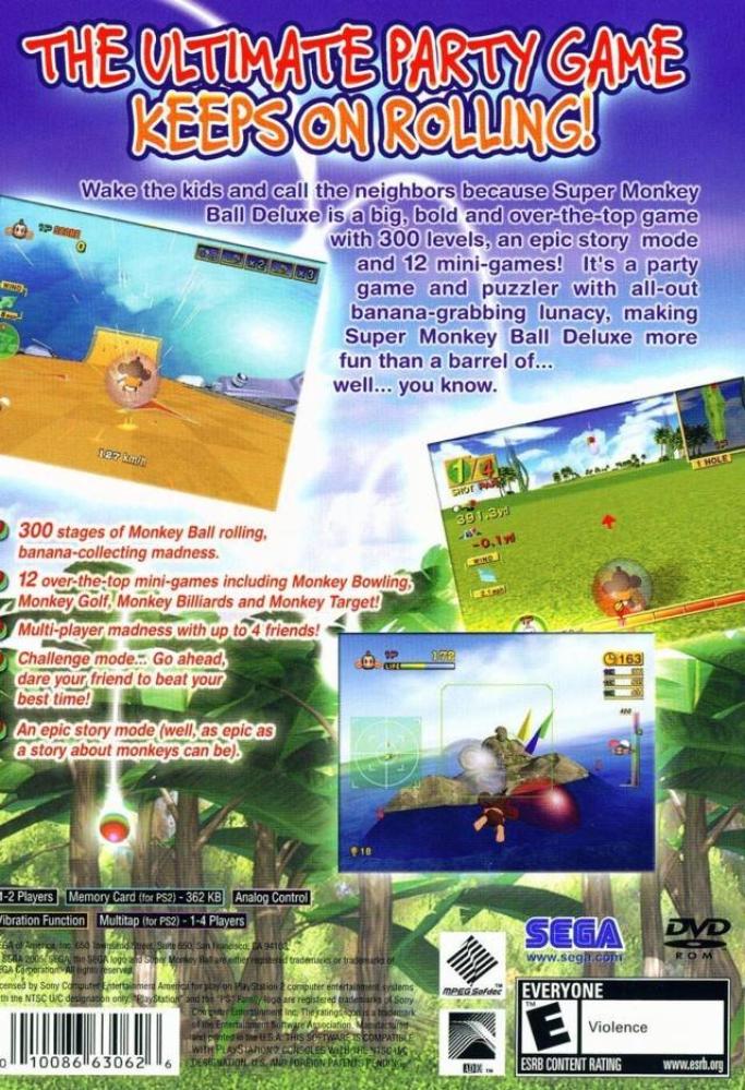 Super Monkey Ball Deluxe features 300 stages (114 from "Super Monkey Ball," 140 from "Super Monkey Ball 2," and 46 Deluxe-exclusive boards. In addition to new stages, Super Monkey Ball Deluxe offers a new Challenge mode, integrating varying skill settings (Beginner, Advanced, and Expert) into one fluid ramp up, rather than breaking them out as independent gameplay sections. There will also be additional stages in the story mode. All twelve of the party games from Super Monkey Ball 1 & 2 are also included.