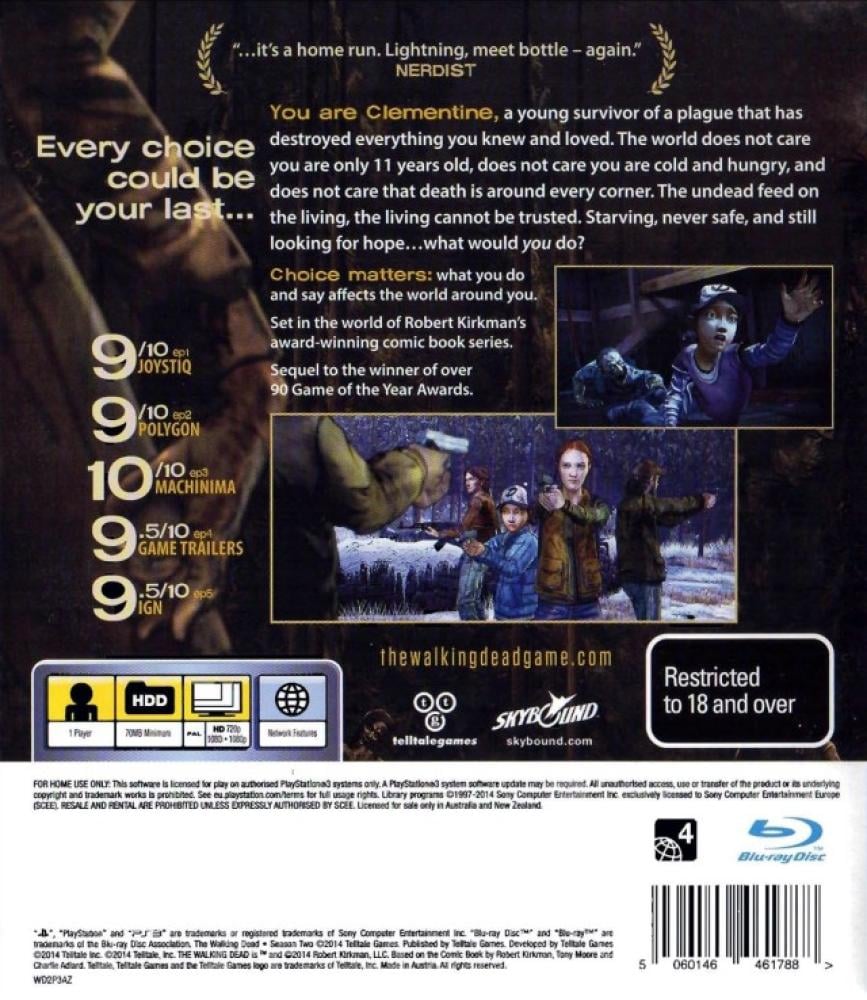 The sequel to 2012's Game of the Year continues the story of Clementine, a young girl orphaned by the undead apocalypse. Left to fend for herself, she has been forced to learn how to survive in an unforgiving world. Experience what its like to play as Clementine, meet new survivors, explore new locations and make gruesome decisions in this five-part game series of choice and consequence. The downloadable version of this game supports English, French, Portuguese, German, Spanish.