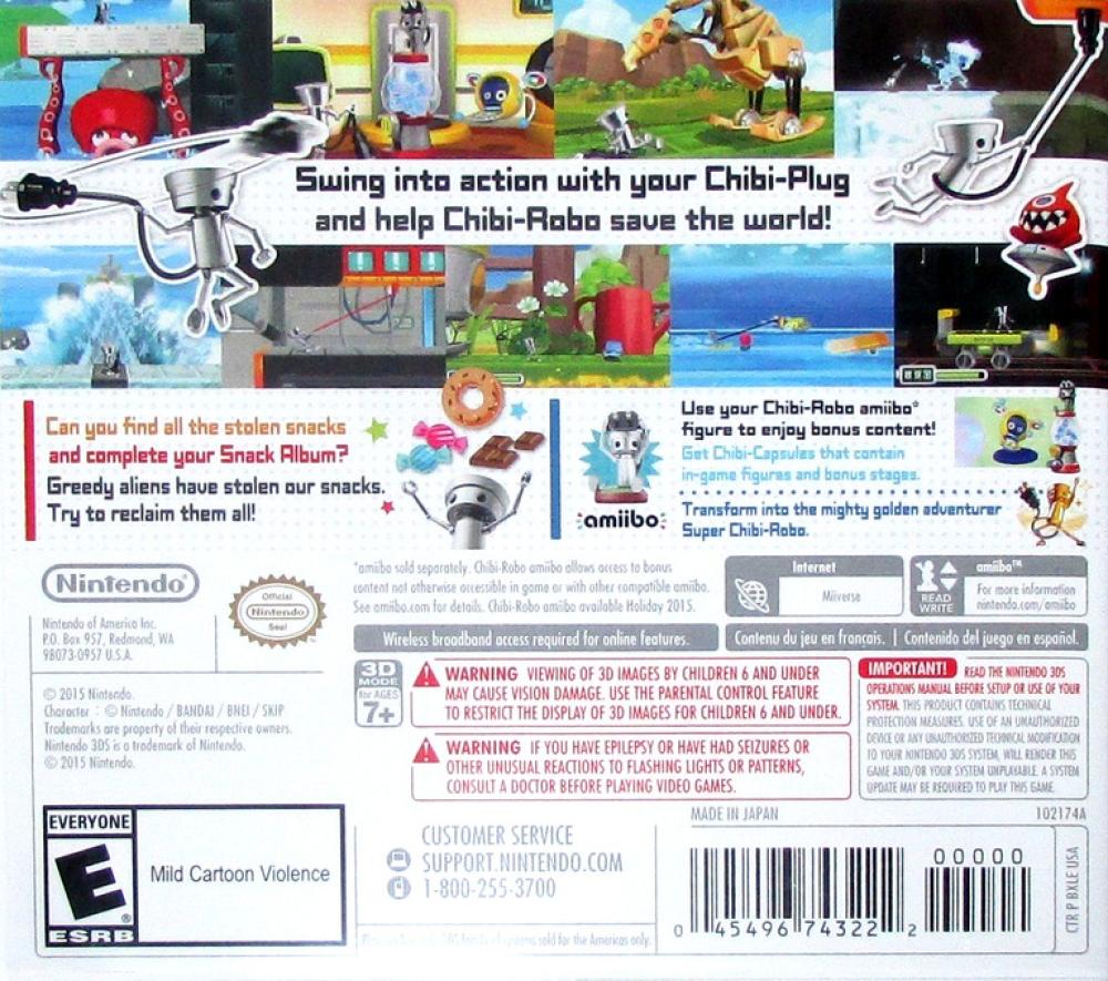Chibi-Robo! Zip Lash comes to the Nintendo 3DS system with a fresh, new take on the franchise. In this side-scrolling game, Chibi-Robo uses his plug and cord to whip enemies, grapple onto ledges, and swing across chasms. Power-up the plug and cord to search for collectables and explore previously out of reach areas.