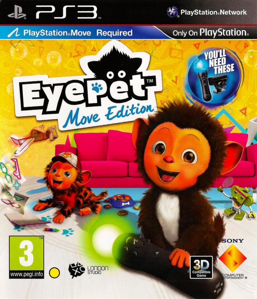 Welcome the newest member of your family into your home - EyePet. Using a PlayStation Eye camera and PlayStation Move motion controller, EyePet is virtually projected into your living room where he can play and interact with you and your family. Not only does EyePet live in your world, but you can also interact with his digital environment. Grab a PlayStation Eye camera and PlayStation Move motion controller and control toys and objects on screen just by moving your hands. You can also create drawings in the real world and watch them come to life as 3-D toys with which your EyePet can play with on screen. Everyone is going to love playing with and caring for this cute and lovable creature. EyePet is the first 3-D animated pet for the PS3, and is the perfect addition for any family!