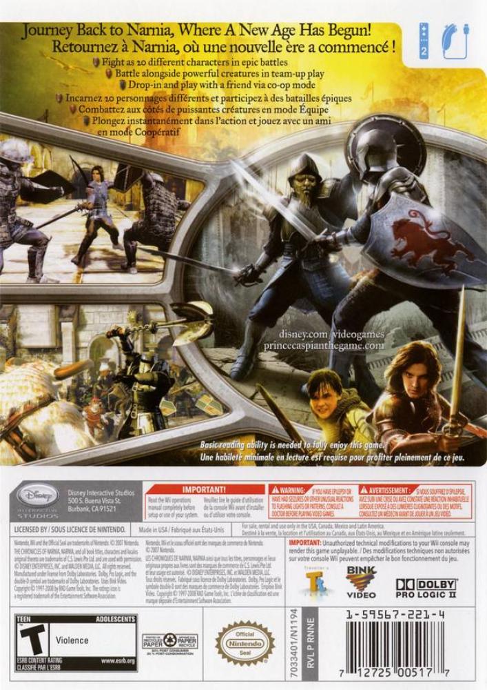 The Chronicles of Narnia: Prince Caspian takes players throughout Narnia and includes a level, which is unique from both the novel and the film. The level, which is set between the events of "The Lion, The Witch and The Wardrobe" and Prince Caspian, takes place at the castle of Cair Paravel and tells the story of how Narnia fell to the Telmarine hordes. In Prince Caspian, Cair Paravel is seen only as abandoned ruins the Pevensies discover hundreds of years later. The action/adventure game offers gameplay for one or two players on the same system and drop-in/drop-out features, allowing either player to join the game and leave. With combat, exploration and puzzle solving that extends beyond the film, The Chronicles of Narnia: Prince Caspian is the ideal complement to the movie-going experience. The game features more than 20 playable characters including the ability to play as Prince Caspian.