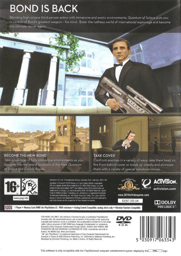 Blending high-octane third-person action with immersive and exotic environments, Quantum of Solace puts you in control of Bond's greatest weapon - his mind. Enter the ruthless world of international espionage and become the ultimate secret agent.