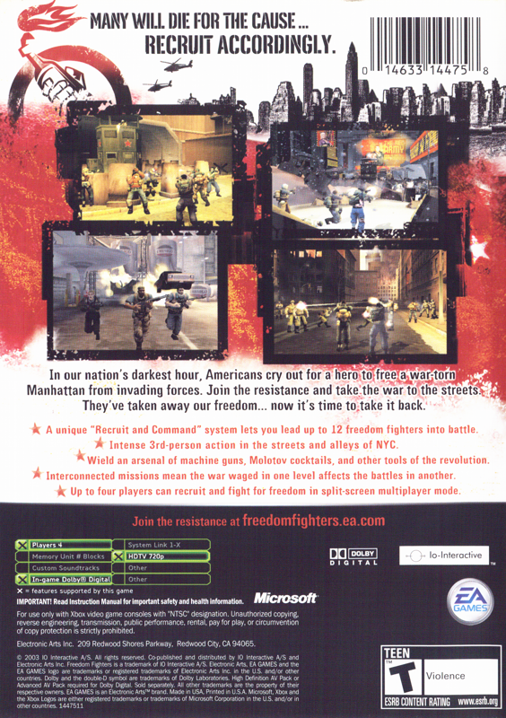 With fierce conflict unfolding in the streets of America, it's your patriotic duty to fight back. Take on the role of Christopher Stone, and evolve from an average New Yorker into a fearless patriot who recruits and leads an army of freedom fighters in the streets of New York City. Freedom Fighters combines the depth of a squad-based game with the intensity of an action-packed war game, all of which unfolds in the streets, subways, and buildings of a modern-day urban battleground.