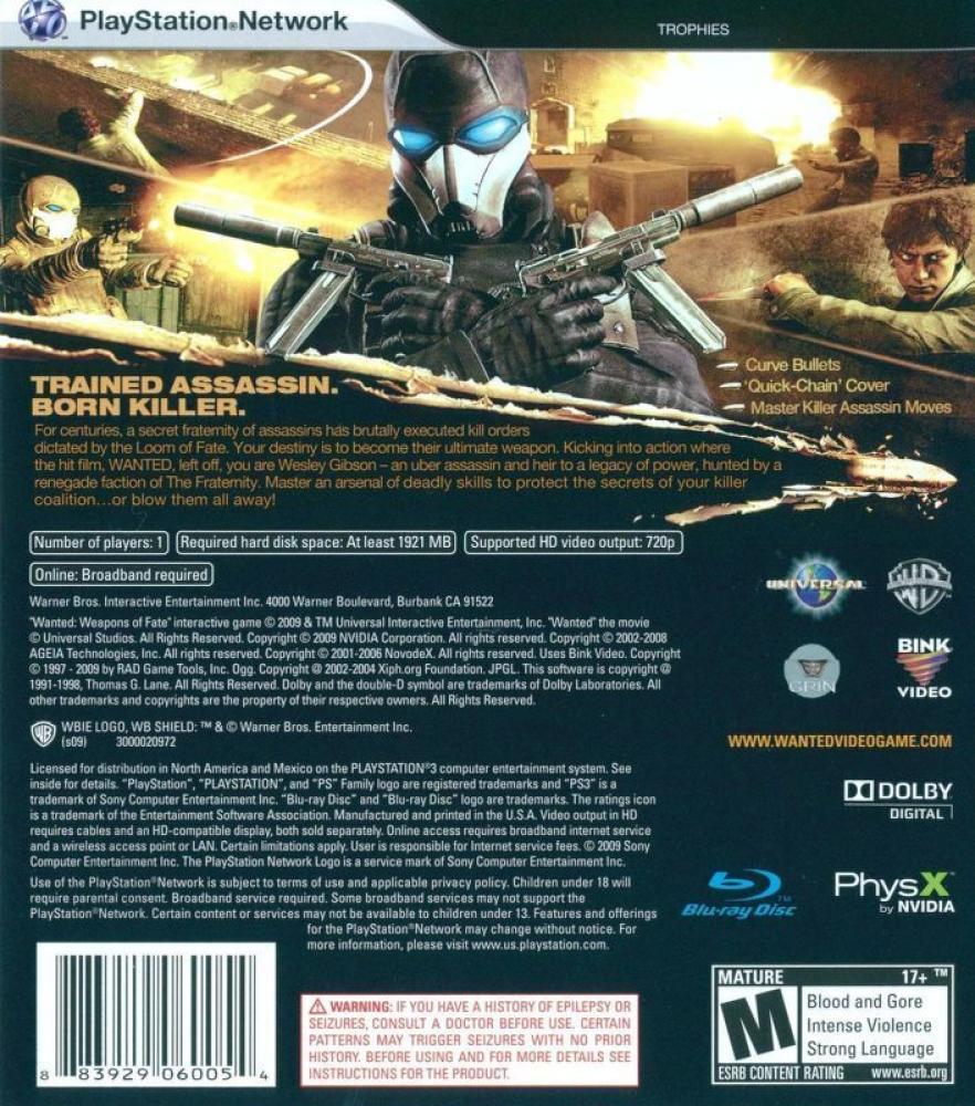 For centuries, a secret fraternity of assassins has brutally executed kill orders dictated by the Loom of Fate. Your destiny is to become their ultimate weapon. Kicking into action where the hit film, WANTED, left off, you are Wesley Gibson an uber assassin and heir to a legacy of power, hunted by a renegade faction of The Fraternity. Master an arsenal of deadly skills to protect the secrets of your killer coalition ... or blow them all away!