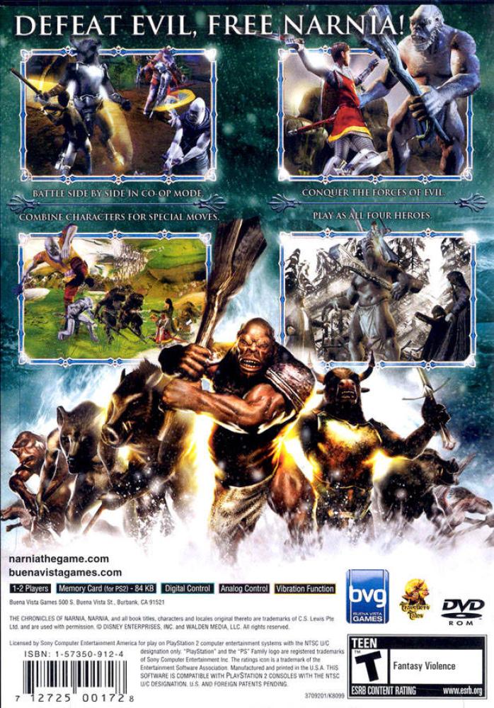 The malevolent White Witch has cast a 100-year winter on the land of Narnia, and you can help Aslan free his people in The Chronicles of Narnia: The Lion, the Witch and the Wardrobe. As the four children from the movie, you can battle fantastical creatures such as Minotaurs, Cyclops, Werewolves, and Wraiths. The game includes puzzle elements and is closely tied to the plot of the movie. Multiplayer cooperative play is also available.