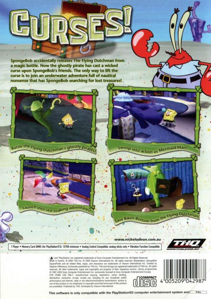 A treasure turns into a terror in SpongeBob Squarepants: Revenge of the Flying Dutchman. While cruising through Bikini Bottom, SpongeBob discovers several treasure chests. Ignoring the warning signs, SpongeBob opens the chests, only to discover he has released the Flying Dutchman--an angry ghost that now wants to make SpongeBob and his friends part of his crew. As you help SpongeBob stop the Dutchman from wreaking havoc in Bikini Bottom, you change costumes, collect gold coins, and interact with all your favorite characters from the TV show.