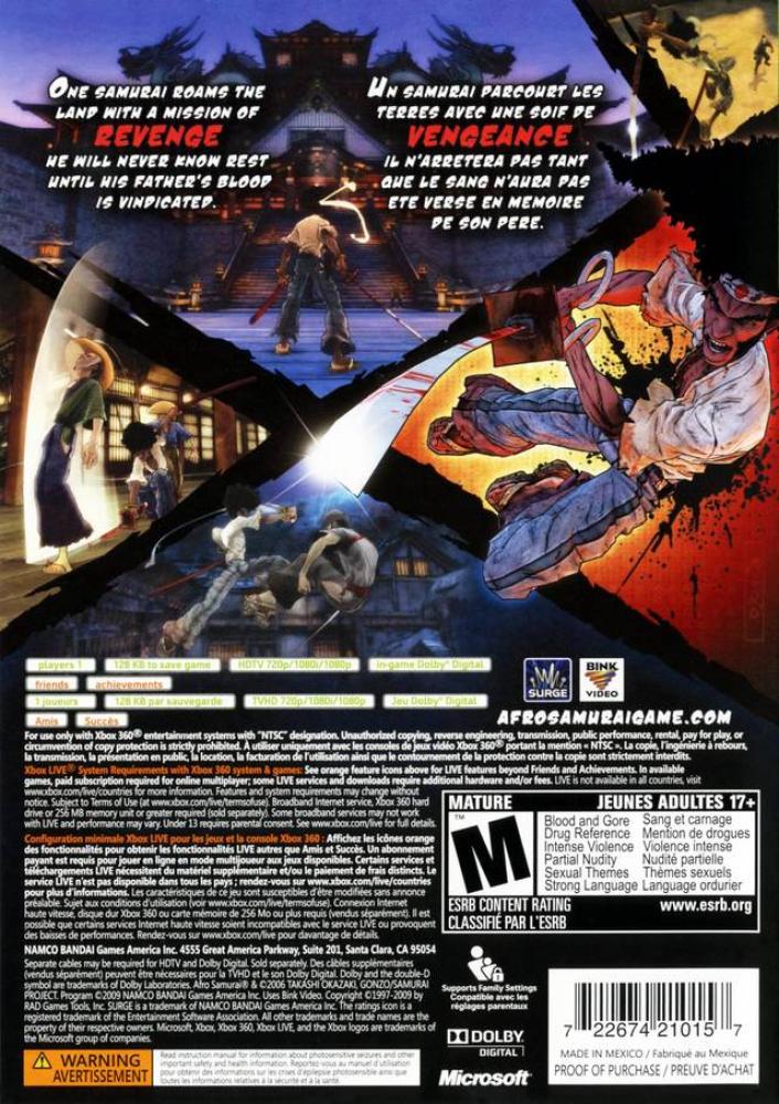 He who possesses the #1 Headband, will rule the world! Afro Samurai is the cutting edge game that delivers a new kind of cinematic game experience, a living episode that offers addictive, immersive and compelling gameplay that's literally dripping in style. Join Afro in his epic hunt for revenge to avenge the murder of his father by the current owner of the #1 Headband. Afro Samurai blends traditional Japanese culture, funky technology and hip hop to create a brutally fresh interactive experience. The hit, animated TV series now comes to life!