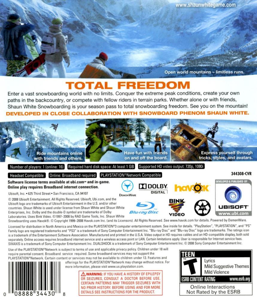 Developed in close collaboration with Olympic Gold Medalist Shaun White the most successful snowboarder in the history of the sport Shaun White Snowboarding is the next-gen game that redefines the action sports genre.