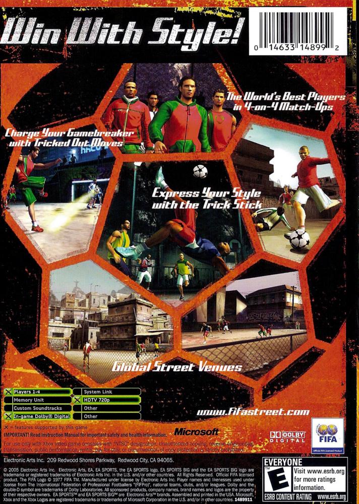 FIFA Street is a combination of arcade action blended with the culture of freestyle street soccer. By removing the rules from the simulation soccer experience, FIFA Street exposes the heart of the world's beautiful game, on-the-ball flare and individual style. Leading this movement are the worlds top professional players, showing off their skills and individual style in 4-on-4 match-ups against the backdrop of global venues that represent the true culture of street soccer. As the first game to support dynamic 1-on-1 encounters, beating your opponent will require skill, technique, and the careful selection of specific moves. As a gamer you'll take on the best and be required to earn their respect, gradually building your reputation and team into an unstoppable force that leads the tide of street soccer.