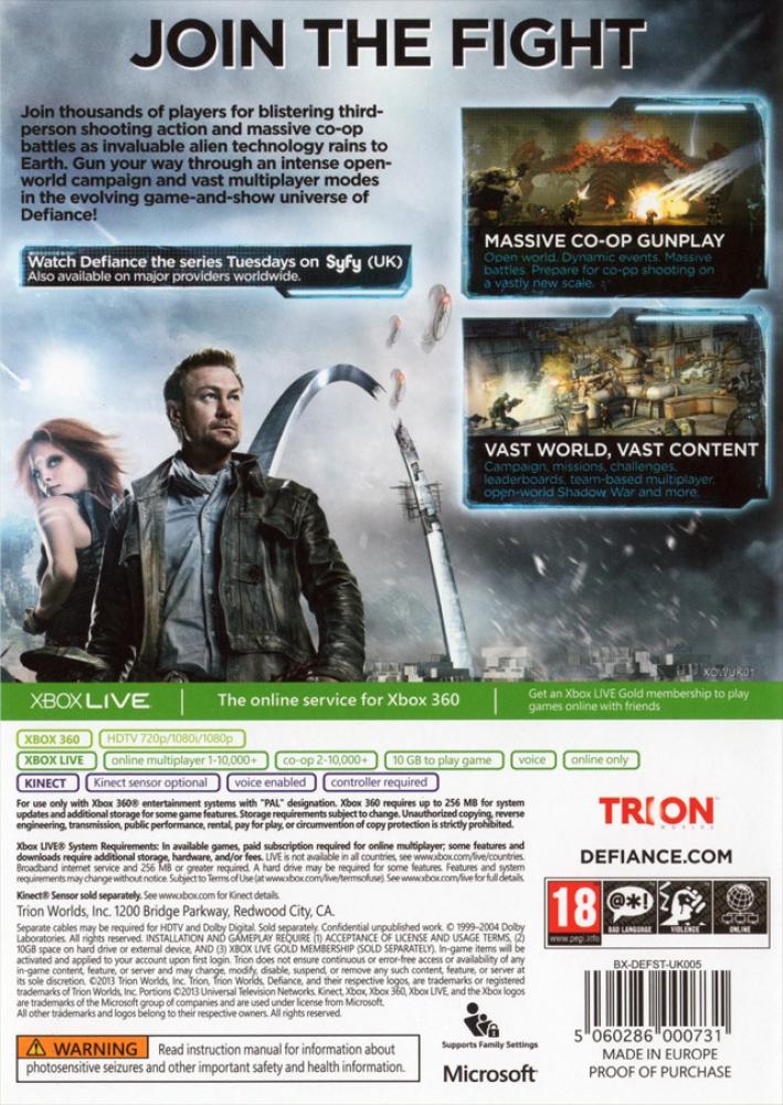 Defiance is the first multi-platform shooter MMO which, in a ground-breaking entertainment experience, interconnects with a global television program by Syfy, cable's premier imagination-based entertainment channel. Announced last year, the first live gameplay demo of Trion and Syfy's visionary concept will debut at the annual industry event.