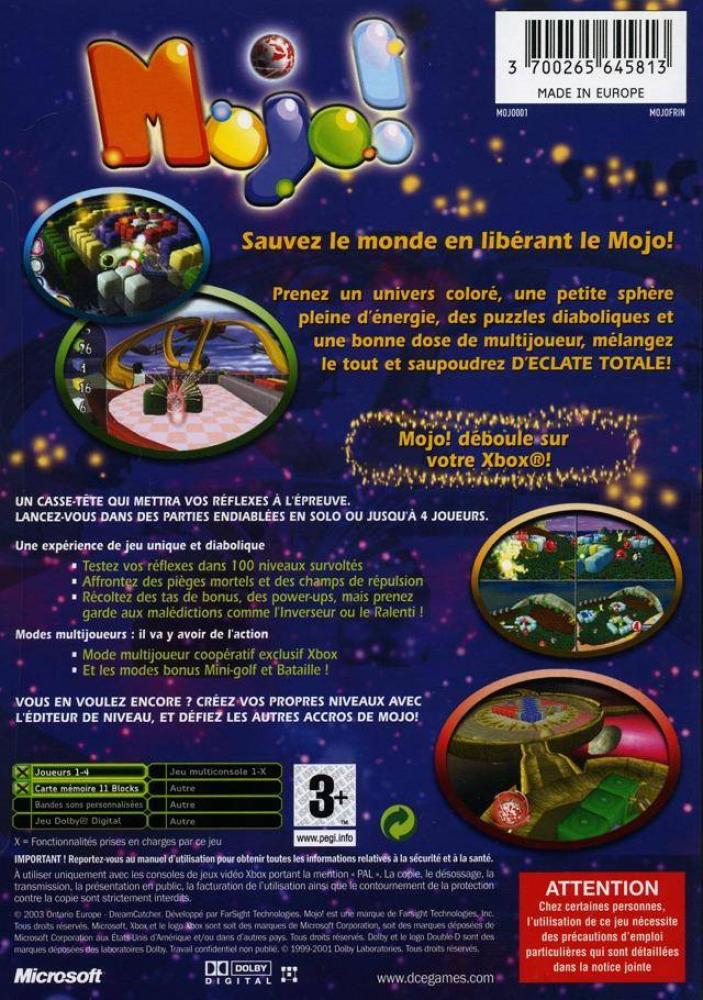 Test your mind and reflexes with Mojo!--a challenging puzzle game for both casual and hard-core gamers. The object of the game is to successfully collect all of the colored cubes in a level and use them to solve the puzzle. Because each move you make slowly drains your Mojo energy, you must carefully weigh each action as you maneuver through increasingly difficult puzzle stages. Only the most shrewd and skillful players will be able to navigate Mojo!'s unique chain of puzzles in order to survive to the legendary 100th stage.