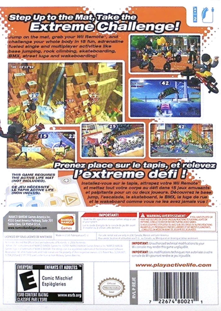 Jump on the mat, grab your Wii Remote, and challenge your whole body in 15 fun, adrenaline-fueled single and multiplayer activities like base jumping, rock climbing, skateboarding, BMX, street luge and wakeboarding!