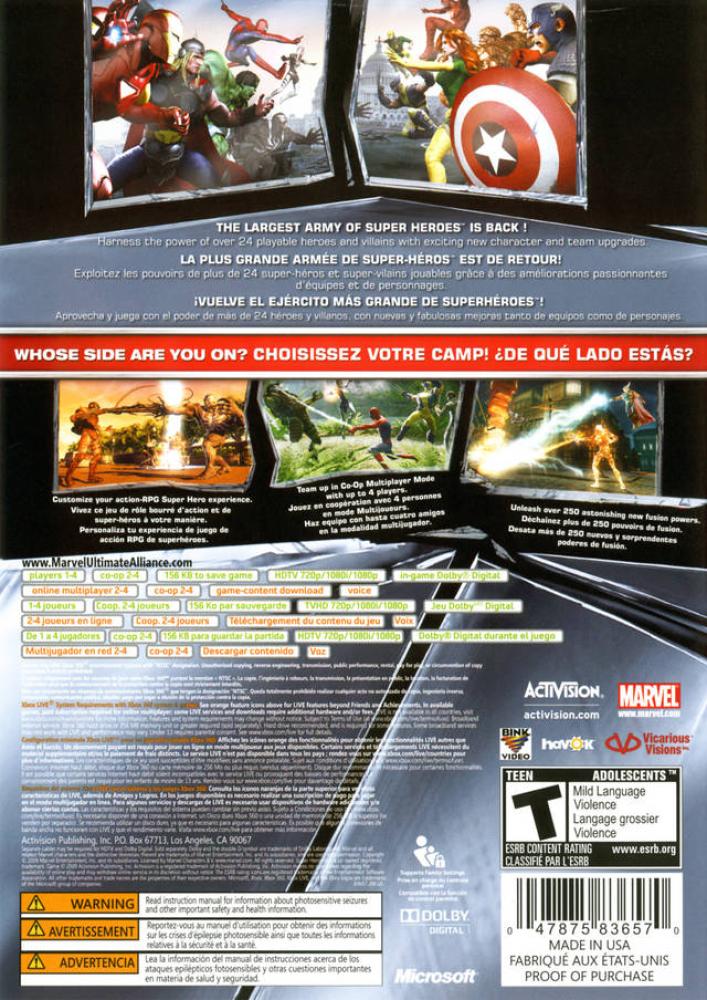 The Marvel Universe is being torn apart. The Superhuman Registration Act becomes law and Super Heroes must register as weapons of mass destruction, becoming licensed government agents. As Civil War is stirred, Iron Man leads the Pro-Registration side while Captain America spearheads the stand on Anti-Registration. The enemies you battle and the missions you accomplish depend on which side you choose.