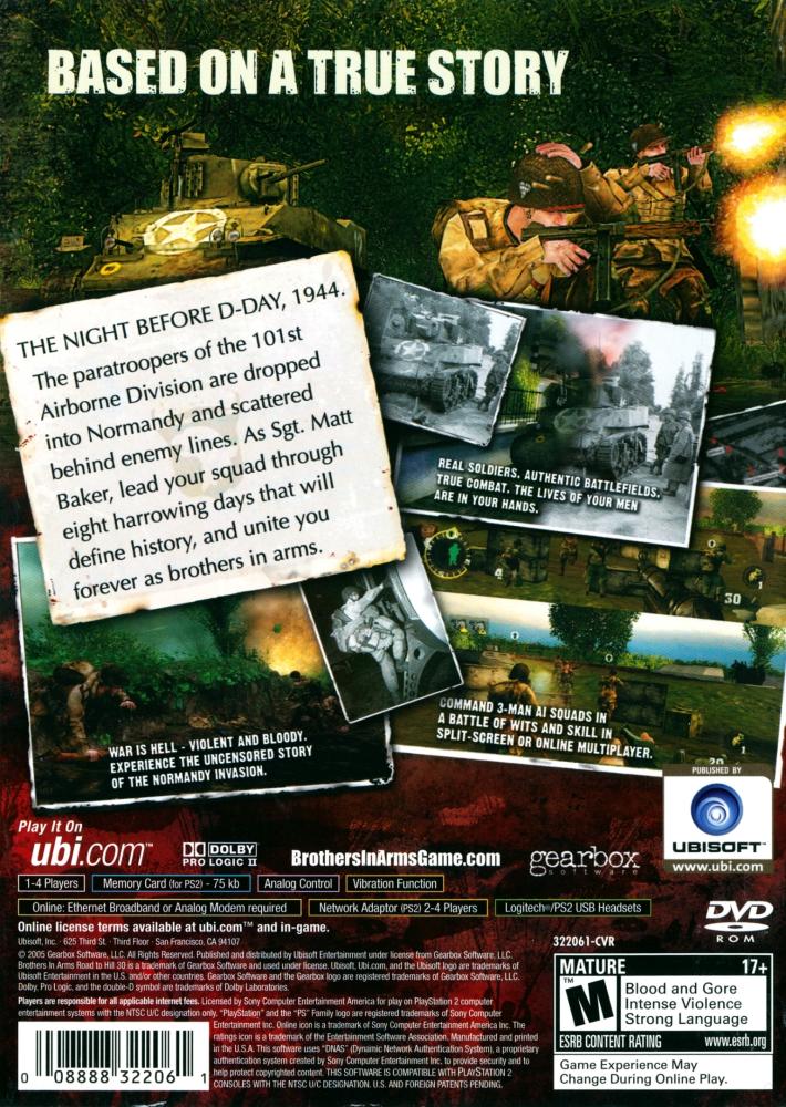 Set during the famous airdrop before the invasion at Normandy, Brothers in Arms tells the story of Sgt. Matt Baker and his squad of 101st Airborne paratroopers, who were scattered over the French countryside. As Baker, you must use real military tactics to flank and kill your foes. During the game, you must choose between the success of your mission and the lives of your men. Brothers in Arms boasts authentic battlefields and equipment, multiplayer gameplay, and a cast of more than 20 distinct soldiers.
