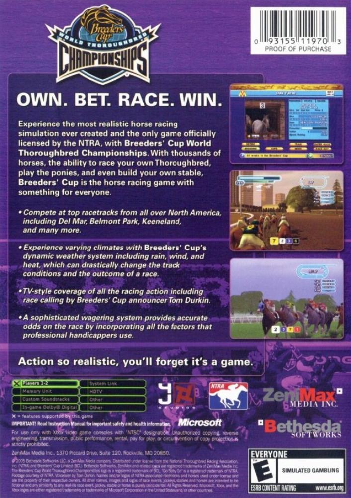 Experience the most realistic horse racing simulation ever created and the only game officially licensed by the NTRA: Breeders' Cup World Thoroughbred Championships (Breeders' Cup). With thousands of horses, the ability to race your own thoroughbred, play the ponies, and even build your own stable, Breeders' Cup is the horse racing game with something for everyone. Perform well enough and maybe you can race against some of the greatest thoroughbreds of all time.