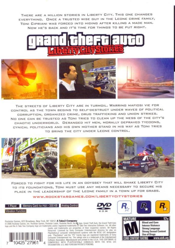 The Grand Theft Auto: Liberty City Stories is the PSP version of the crime action series, Grand Theft Auto. Once again, you can explore the expansive, interactive world of Liberty City as you unravel brand-new missions and storylines. The Grand Theft Auto: Liberty City Stories also includes the voice acting, music, and tongue-in-cheek humor that the series is known for.