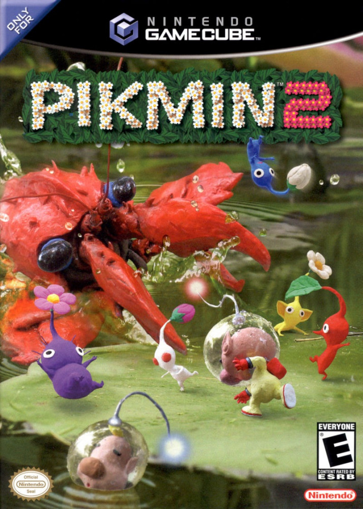 Captain Olimar has returned to the planet where the Pikmin live, and he's all business this time. The company he works for is going bankrupt, so to save it, Olimar must salvage the treasure buried all over the planet. Of course, he'll need the help of the Pikmin to do that--he can't do anything by himself. Control one of two main characters--Olimar or his assistant--as you command your Pikmin to defeat enemies, propagate more Pikmin, collect precious doodads, and solve puzzles. With unlimited time, new colors of Pikmin, and two-player cooperative play, Pikmin 2 improves on the original in many ways.