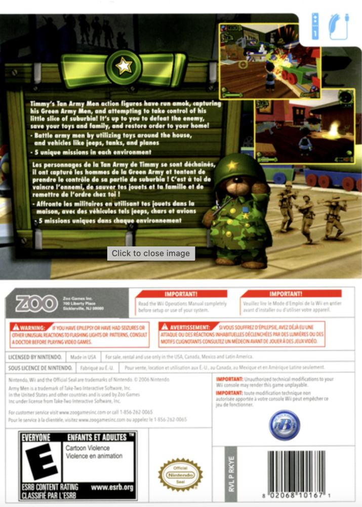 In Army Men: SOM take on the role of Timmy as he battles alongside the "Green Brigade" against the "Tan Strike Force" to prevent them from taking over the house. Timmy enters the world of make-believe as he imagines himself only 3 inches high. Armed with his favorite toy weapons, help Timmy prevent his little tan army men from achieving global home domination. The player's goal is to complete every mission in the game and work their way to the final battle and prevent the Tan Strike Force from taking control of the house.