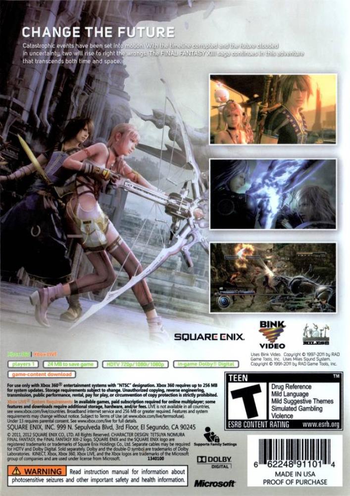 Three years after the events in FINAL FANTASY XIII, Lightning has gone missing, and Snow is nowhere to be found. In a rebuilding world, Serah notices that something is amiss. After a fortuitous encounter with a mysterious man named Noel, the two set off to find Lightning.