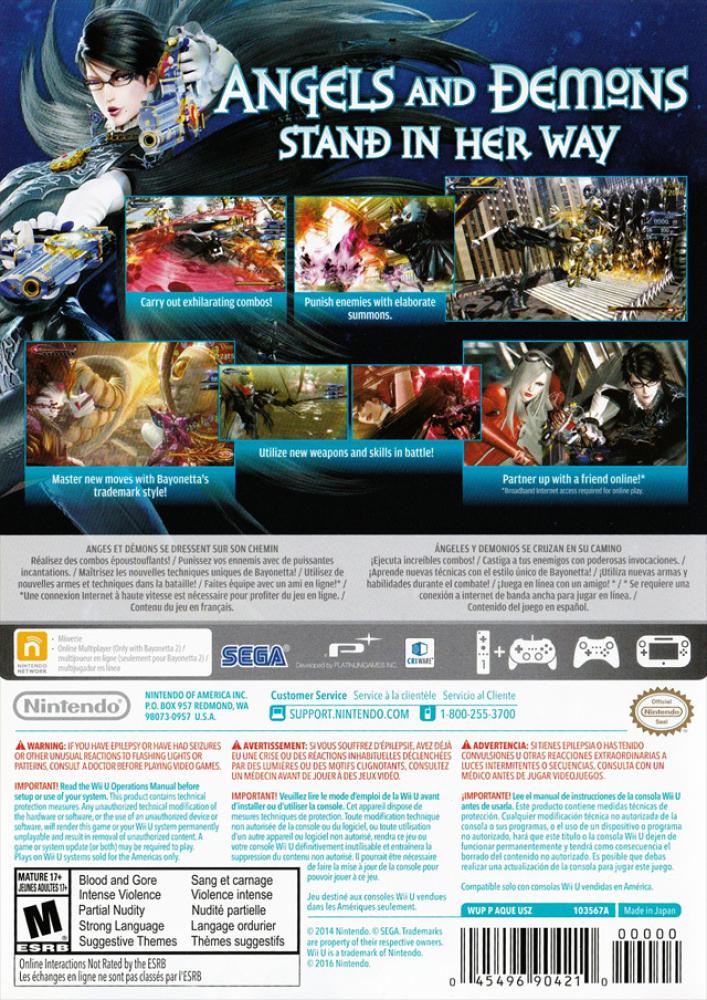 In this climatic sequel to the critically acclaimed Bayonetta action game, players will be on the edge of their seats from start to finish. Brimming with epic, gorgeous cut scenes and battles that are more exhilarating than ever, this game never lets up on the action. Fight on top of a jet as it soars through a downtown city. Duke it out against a giant angel, who bears a whip for an arm, on top of a speeding train. And take to the skies in a fight against a demonic monster while ascending to the top of a skyscraper.