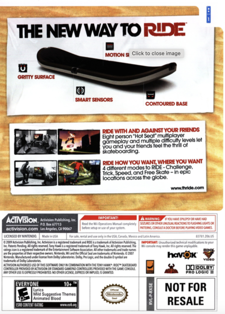Experience the true thrill of skateboarding as never before through the revolutionary new skateboard controller in Tony Hawk: Ride. Bundled with the Ride game, the unique motion-sensitive board controller redefines the action-sports genre by translating your body motions into the game. No buttons, no thumbs, no analog sticks--just you on the board. For the first time in video game history, anyone can jump on a skateboard and feel the freedom, creativity, and accomplishment of skateboarding.