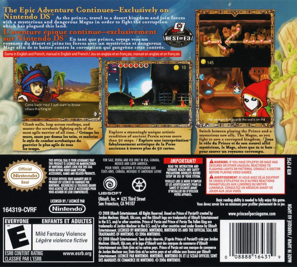 Expanding the saga with an independent storyline, the Fallen King utilizes the unique stylus controls to deliver the extraordinary acrobatic and combat action of the Prince of Persia franchise.