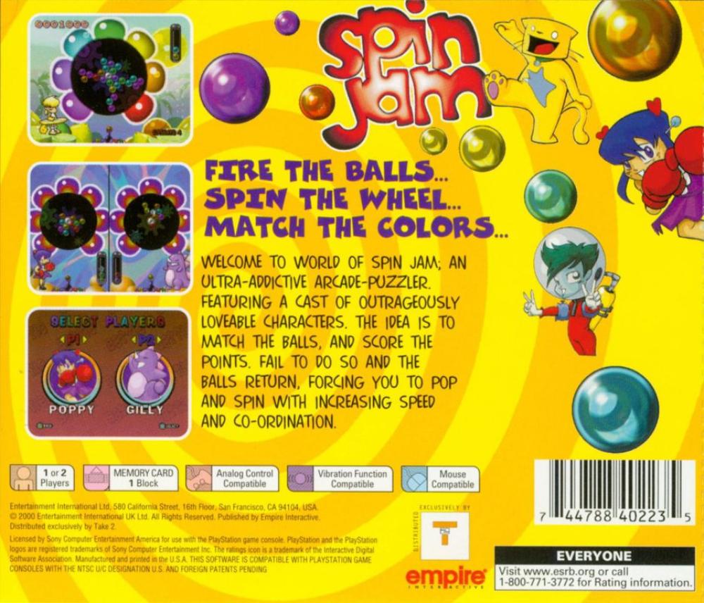 Welcome to world of Spin Jam; an ultra-addictive arcade-puzzler. Featuring a cast of outrageously loveable characters. The idea is to match the balls, and score the points. Fail to do so and the balls return, forcing you to pop and spin with increasing speed and co-ordination.