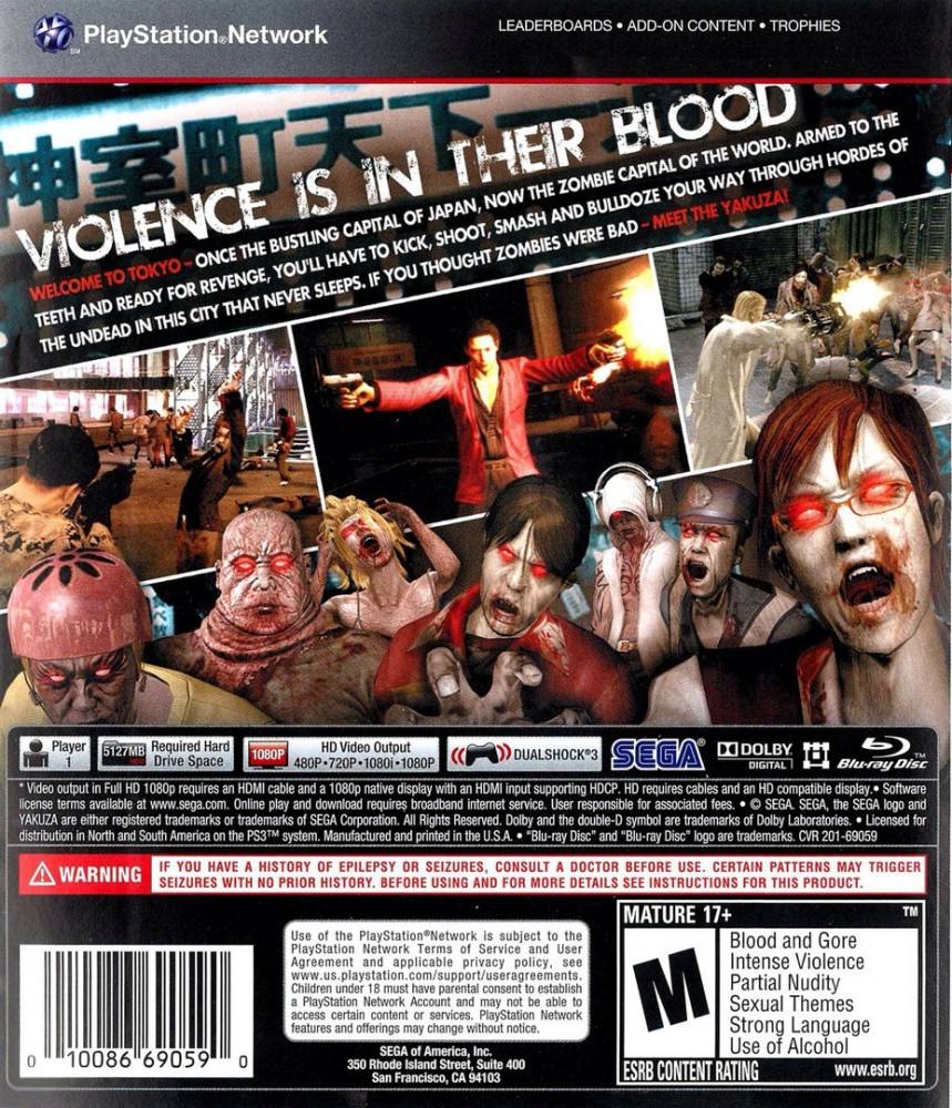 As the story begins, it's business is as usual in Kamurocho. Soon, however, all hell breaks loose as a zombie outbreak turns the area into a quarantine zone, walled off by the Japanese Self Defense Force. This quarantine zone gradually expands as the story progresses. Real-life shops and signs from the quarantine zone add a sense of realism to the scene. Added to the sub stories is a new "Buddy" system, where players can recruit and fight alongside local residents, further enhances gameplay. And as for corporate tie-in products and stores - a hallmark of the RYU-GA-GOTOKU series - OF THE END features