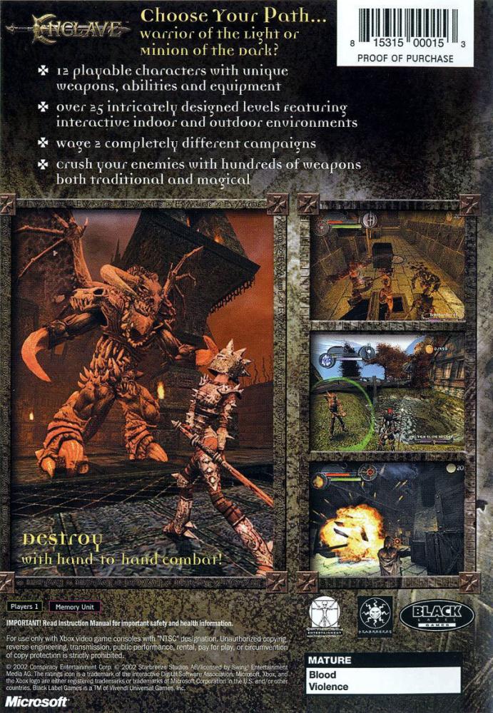 In the fantasy world of Enclave, a bottomless rift divides the people of the Celenheim and the Outlands. Skirmishes along the border have become more and more frequent and it's only a matter of time before these altercations turn into a full-scale war. Now you must choose whether to lead the desperate people of Celenheim and save them from destruction, or ally with the dark hordes of the Outlands and overrun the Enclave. Whatever you decision, get ready for intense medieval combat featuring different playable characters, five mighty end bosses, and dozens of weapons, objects, and magical items.
