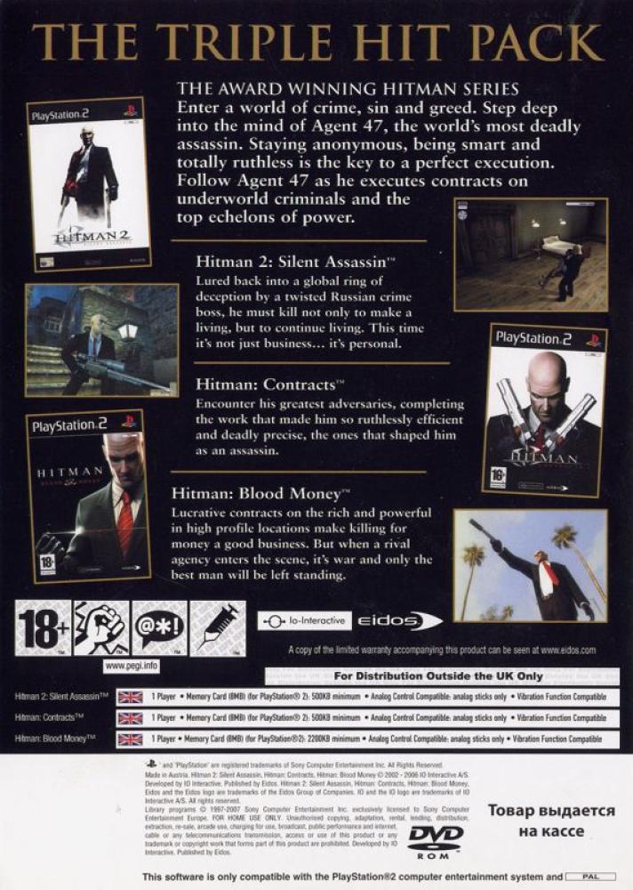 Hitman Trilogy features three critically acclaimed Hitman games in one killer package: Blood Money, Silent Assassins, and Contracts. Plus a sneak preview of the next big franchise from the makers of Hitman, Kane and Lynch: Dead Men.