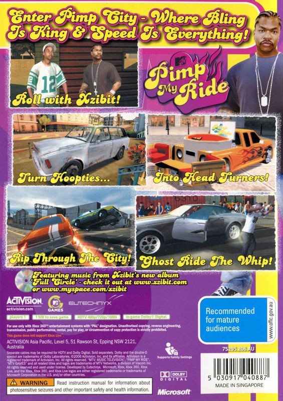 Enter Pimp City, where bling is king, and style is everything. On these streets, if your car isn't fully pimped out, you'd be better off walking. You and Xzibit will take on the challenge of hooking up your homies, and transforming their hoopties, buckets and beaters into the hottest whips on the street, while redlining through the highways and alleyways of Pimp City. You choose the mods, you choose the route, but pimpin' ain't easy. It will take speed and style to hook them up. Do you have what it takes to Pimp Their Ride?