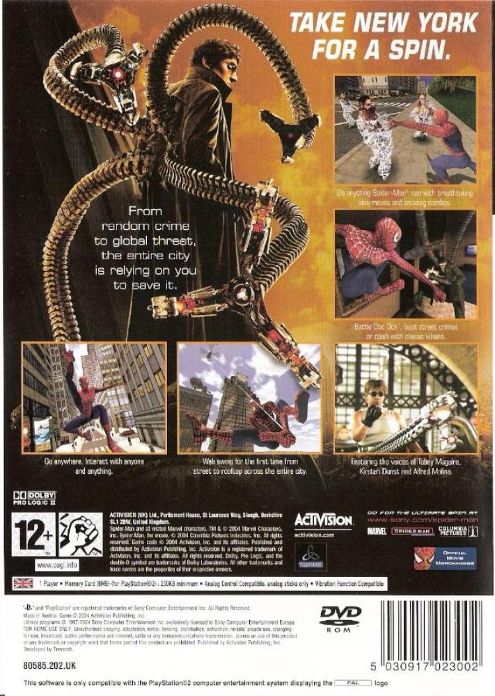 Two years after becoming Spider-Man, you face your toughest enemy yet - the dangerous Doc Ock. Now the city of New York is relying on you to save it from his reckless rampage.